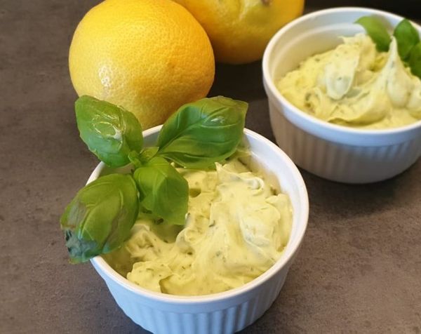 Die Zitronen-Basilikum Butter schmeckt hervorragend auf Brot und Baguette, aber auch zu Fisch und Fleisch.