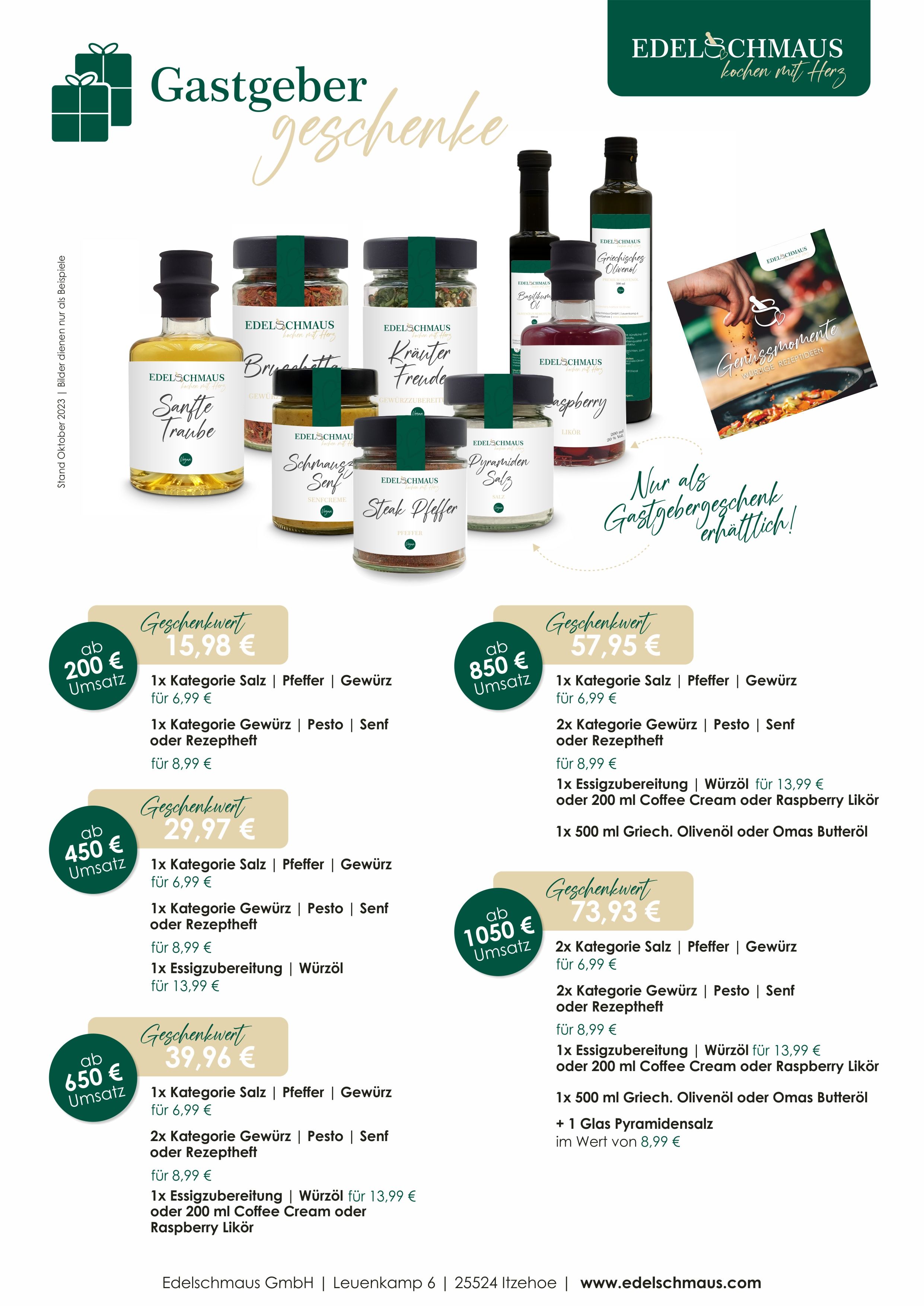 Als Gastgeber/in wirst Du, als Dankeschön für Deine Gastfreundlichkeit, mit kostenlosen Edelschmaus Produkten beschenkt. Lass Dich überraschen und wähle aus unserem Gastgeberprogramm bis zu sechs Geschenke.
